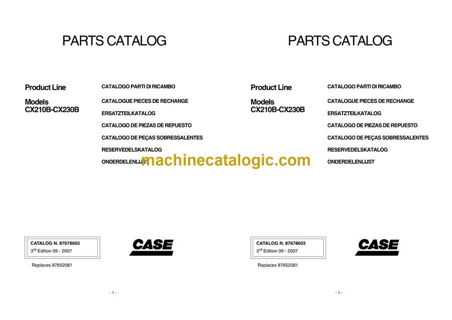 Case CX210B, CX230B Crawler Excavator Parts Catalog (87678603_int_A4N)