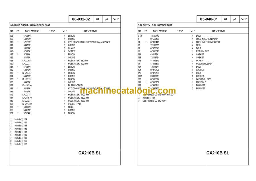 Case CX210B SL Crawler Excavators Parts Catalog (84249185)