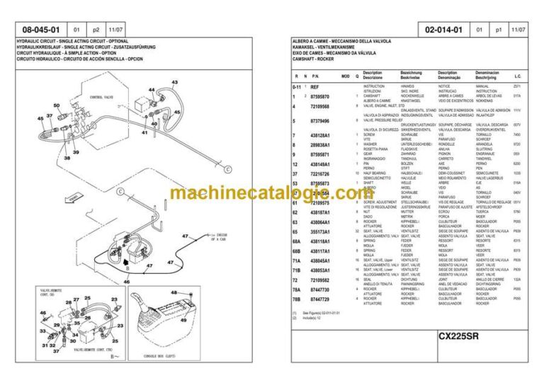 Case CX225SR Crawler Excavator Parts Catalog (87730892_int_A4N)