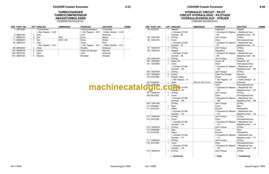 Case CX225SR Crawler Excavator Parts Catalog (Cre 7-8380)