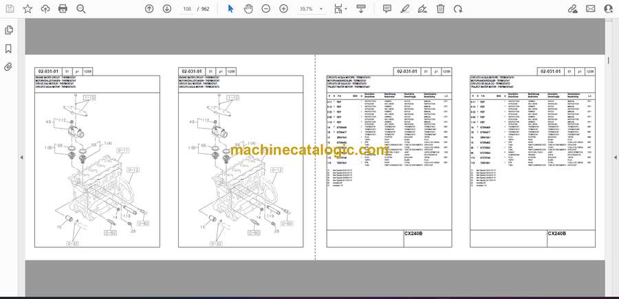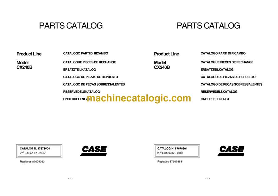 Case CX240B Excavator Parts Catalog (87678604_int_AN)