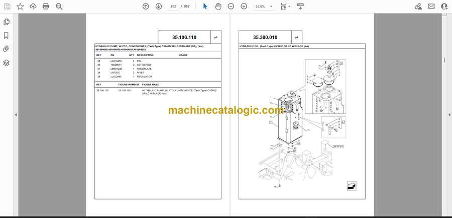 35.106.010 VARIABLE DELIVERY HYDRAULIC PUMP, LINES; (Tech Type) CX245D SR LC W/BLADE