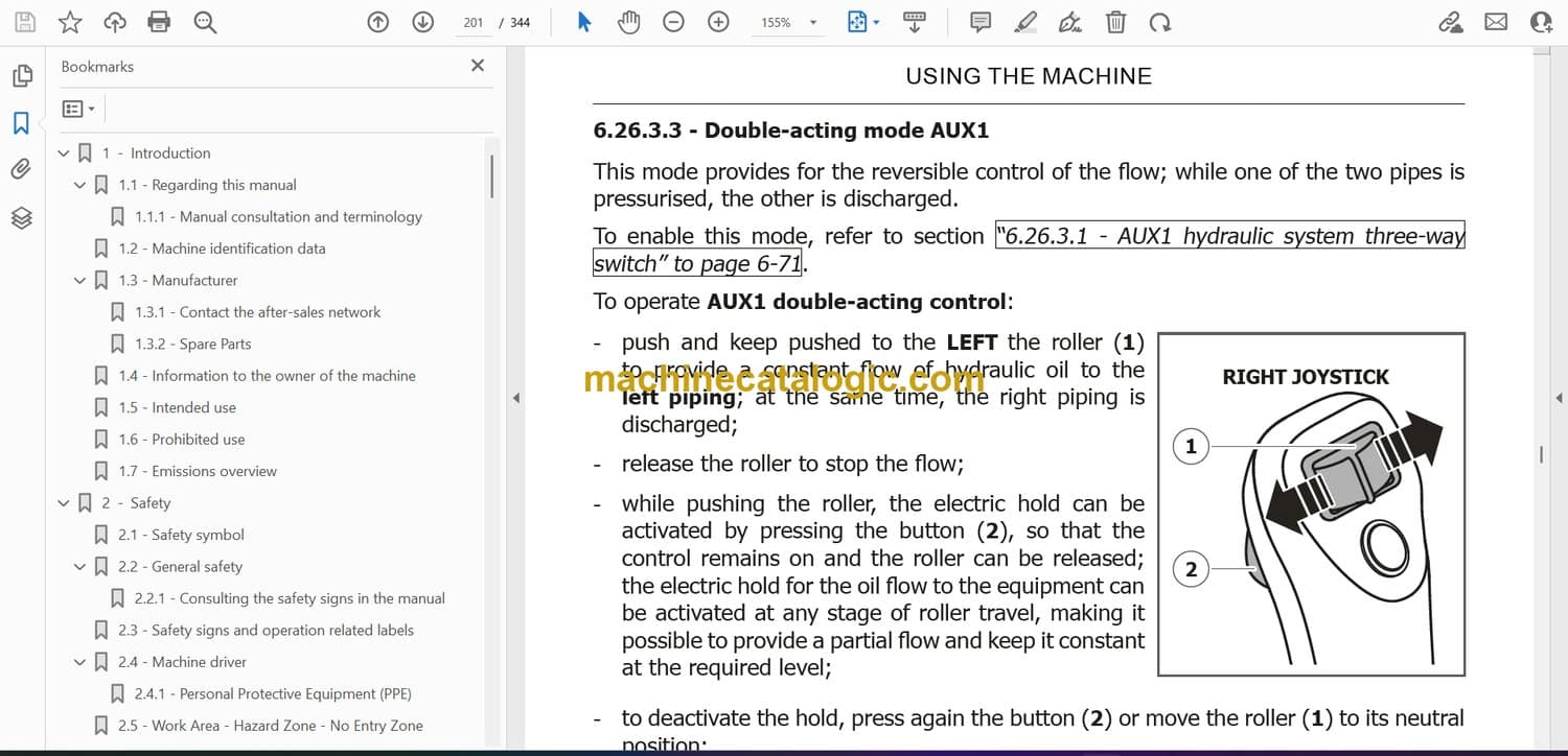 6.25 – Boom swing/AUX2 hydraulic system selector button (optional)