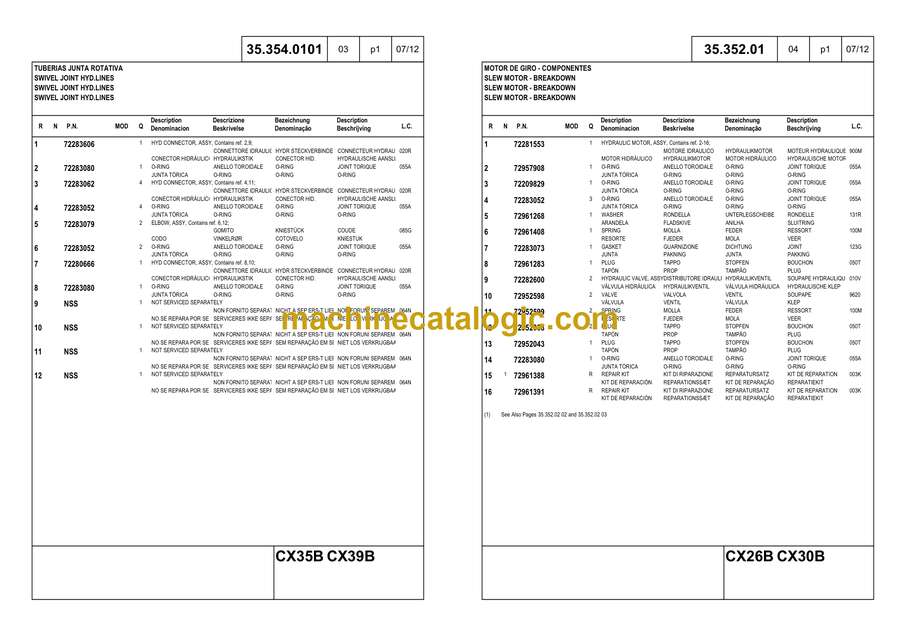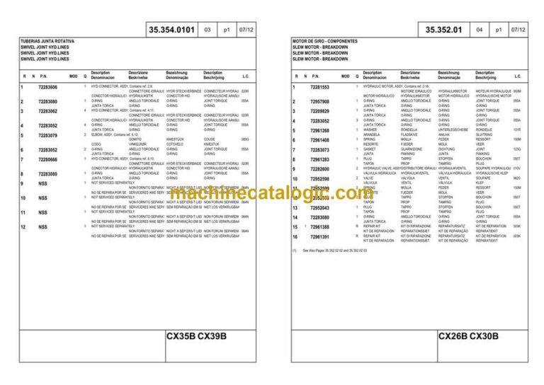 Case CX26B Series 2, CX30B Series 2, CX35B Series 2, CX39B Series 2, CX45B Series 2, CX50B Series 2, CX55B Mini Excavator Parts Catalog (84413782B)