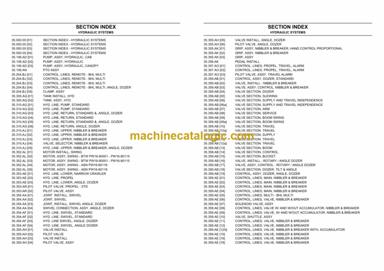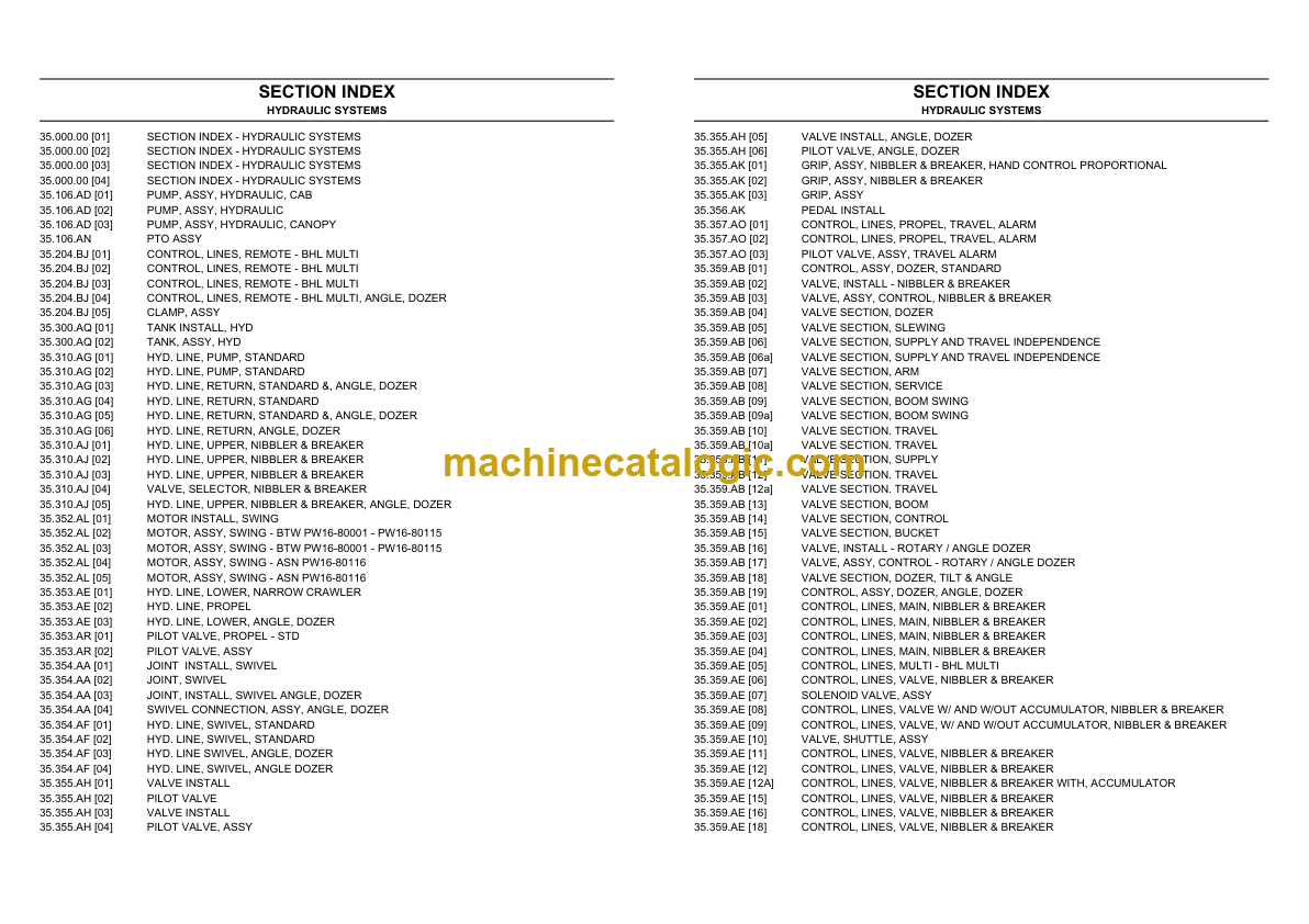 PICTORIAL INDEX – HYDRAULIC SYSTEMS