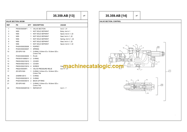 SECTION INDEX – BOOMS, DIPPERS & BUCKET