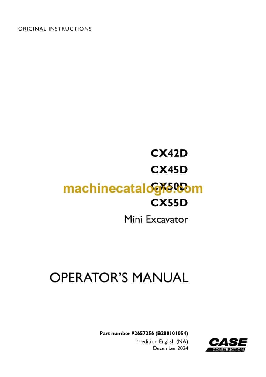 Case CX42D, CX45D, CX50D, CX55D Mini Excavator Operators Manual