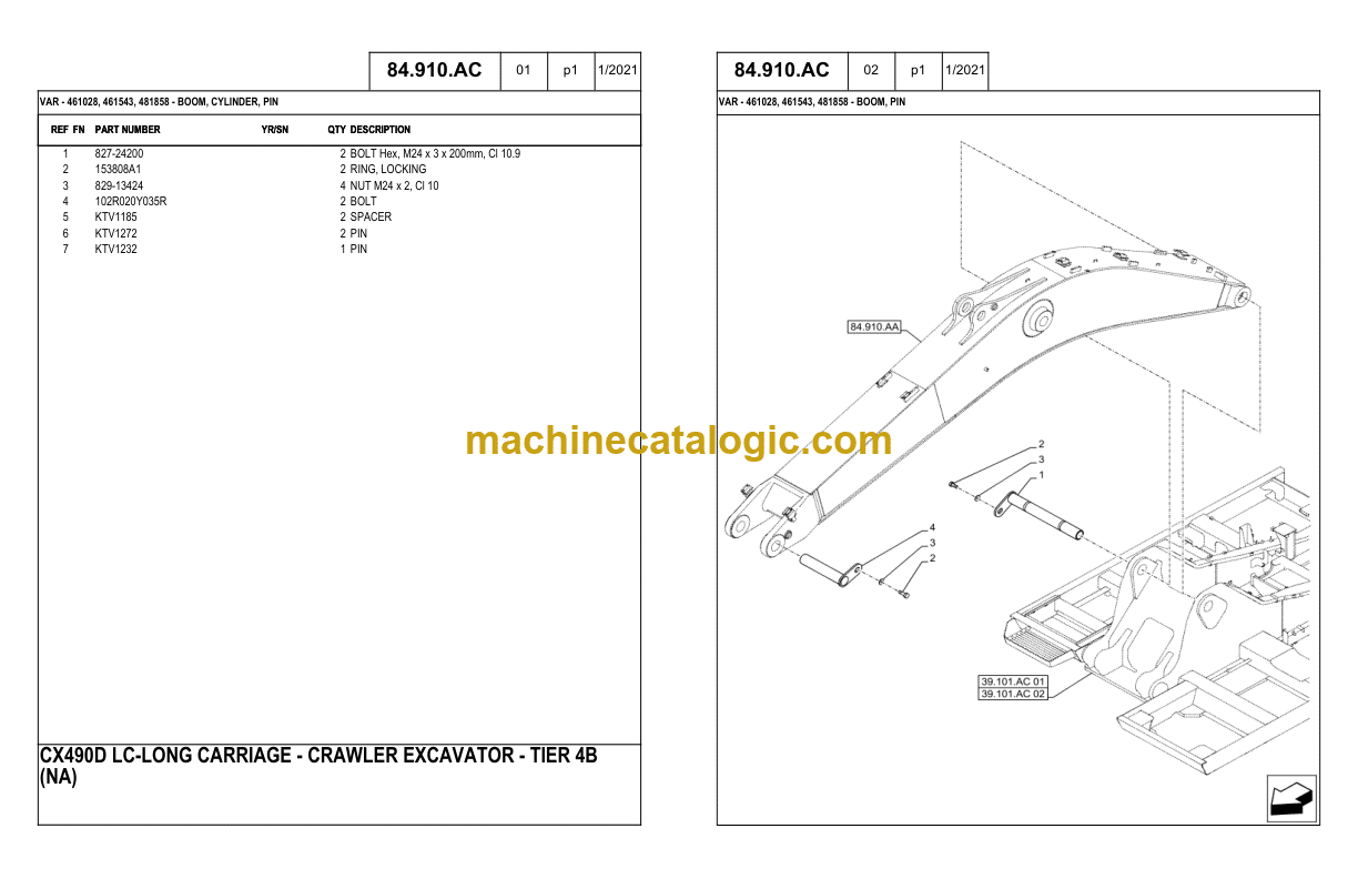 Case CX490D LC Tier 4B Crawler Excavator Parts Catalog