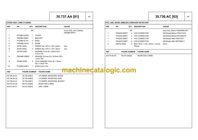 PICTORIAL INDEX – BOOMS, DIPPERS & BUCKET