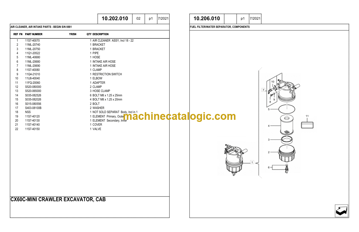 02 AIR CLEANER, AIR INTAKE PARTS – BEGIN S/N 0881