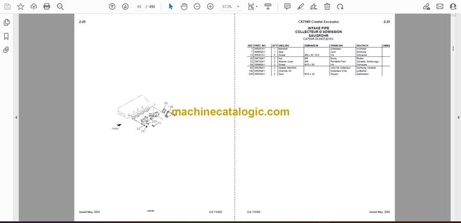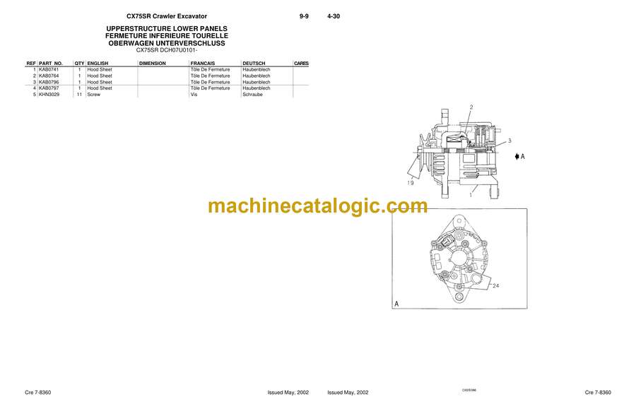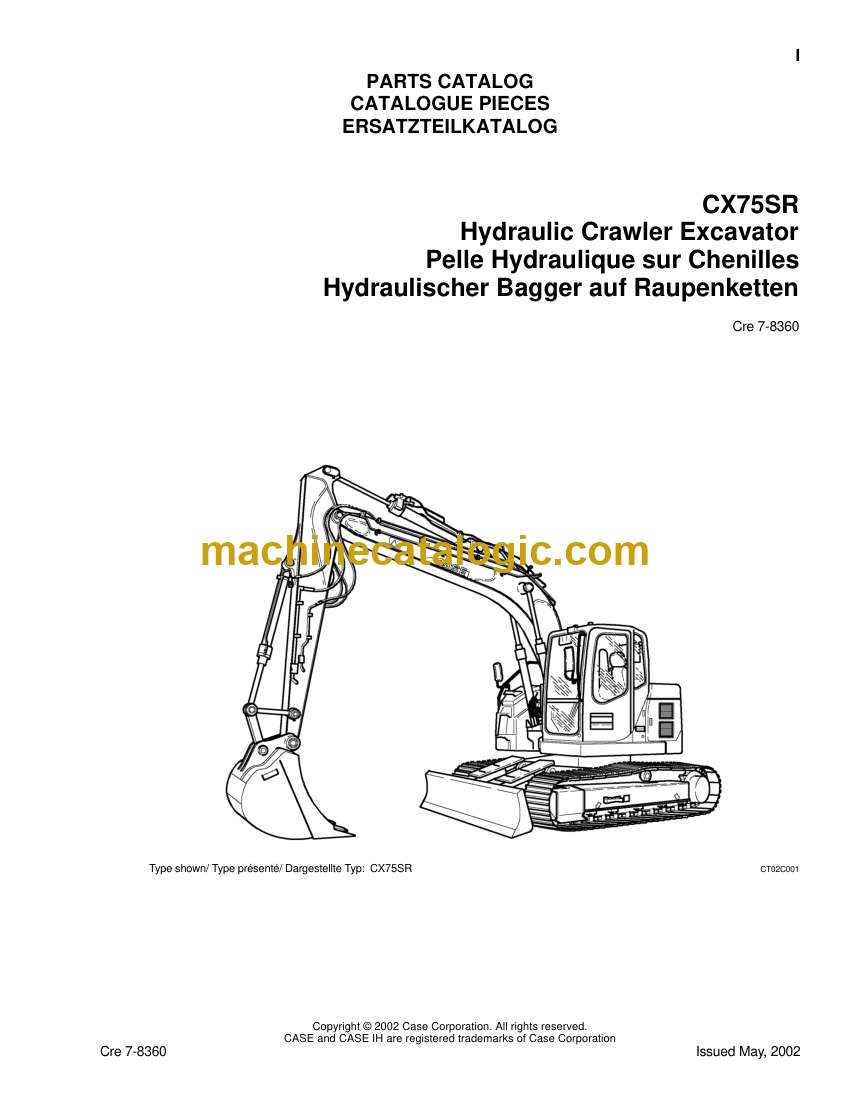 Case CX75SR Hydraulic Crawler Excavator Parts Catalog (7-8360)