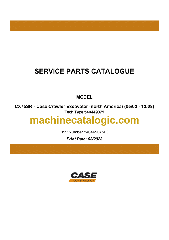 Case CX75SR NA Crawler Excavator Service Parts Catalogue