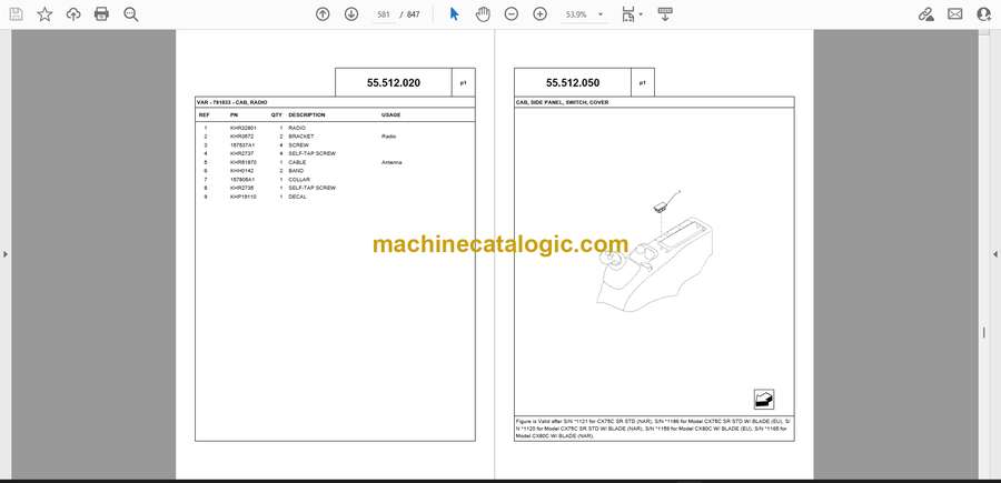 This CX80C runs in the ugly stuff—tight jobsites, mud, trench work, loading trucks all day—so when it’s down, the whole site feels it. This Service Parts Catalogue helps you plan a job before you even crack a fitting: trace assemblies, match part numbers, and line up seals, pins, hoses, and hardware so the machine’s only parked once. Picture this: you’re planning a swing motor reseal; with the book, you can inspect the exploded view, isolate the right seal kit, O-rings, and snap rings, then have everything on the bench before you pull a single bolt.