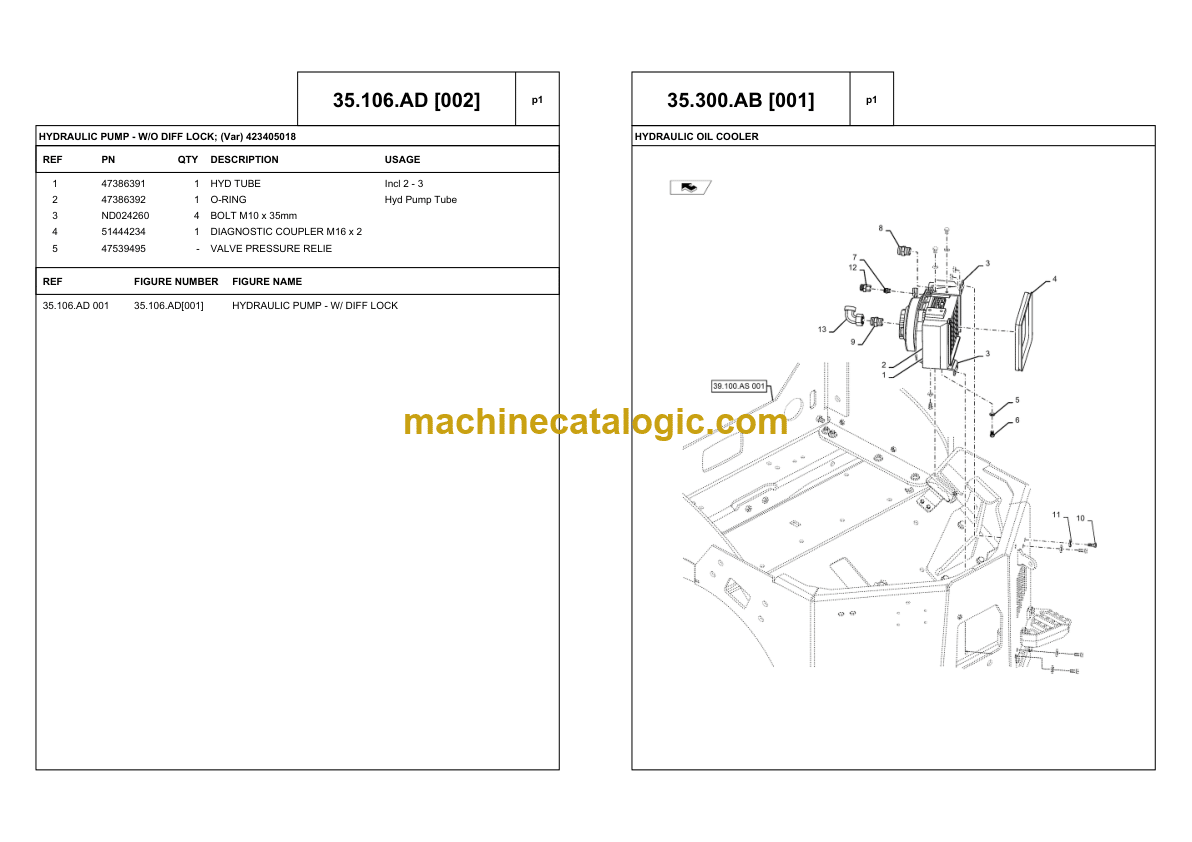 35.106.AD [002] HYDRAULIC PUMP – W/O DIFF LOCK; (Var) 423405018
