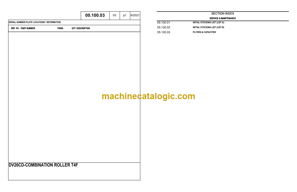 00.100.03 03 SERIAL NUMBER PLATE LOCATIONS / INFORMATION