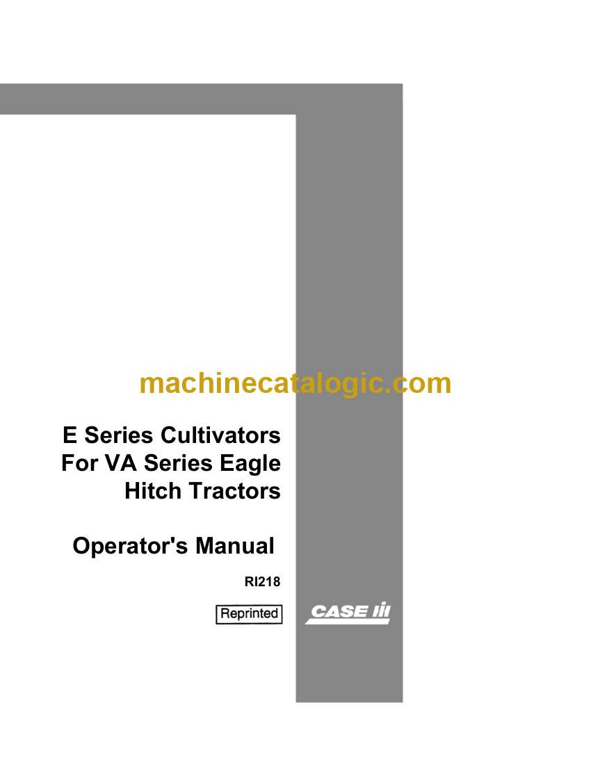 Case E Series Cultivators For VA Series Eagle Hitch Tractors Operators Manual