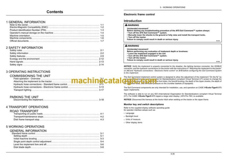 Case Ecolo-Tiger 875 Mulch-Till Ripper Operator Manual