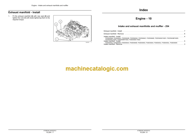 Intake and exhaust manifolds and muffler. . . . . . . . . . . . . . . . . . . . . . . . . . . . . . . . . . . . . . . . . . . . . . . . 10.254