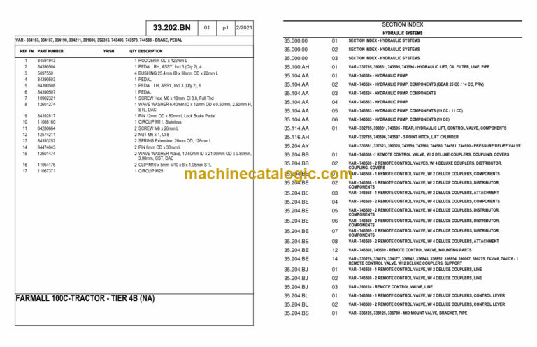 00.000.35 02 PICTORIAL INDEX – HYDRAULIC SYSTEMS