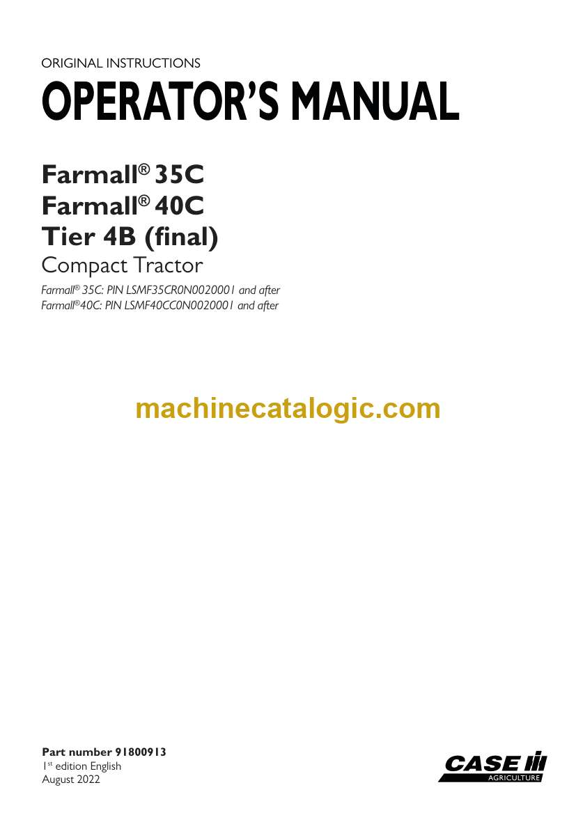 Model: Farmall 35C, 40C Tier 4B Final Compact Tractor