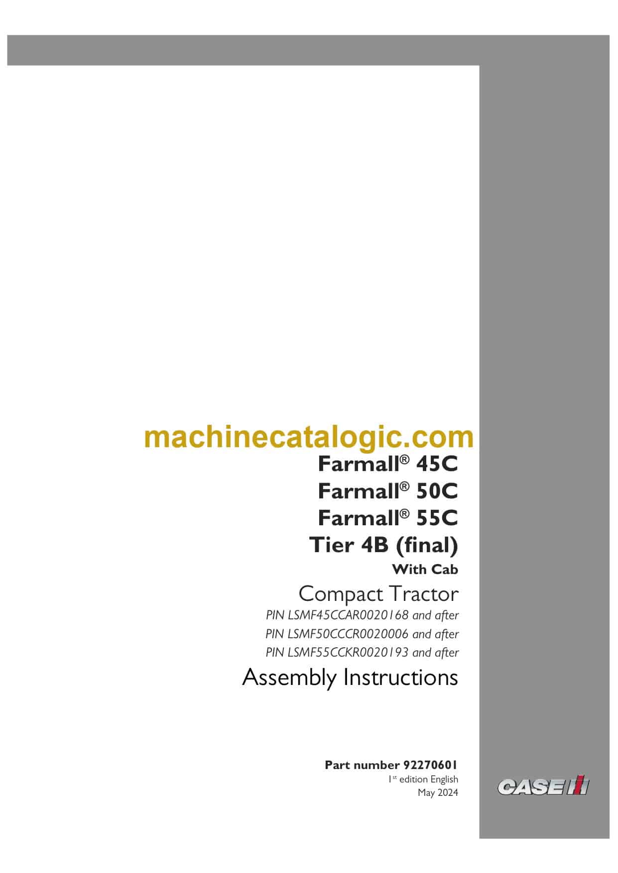 Case Farmall 45C, 50C, 55C Tier 4B Final Compact Tractor Assembly Instructions