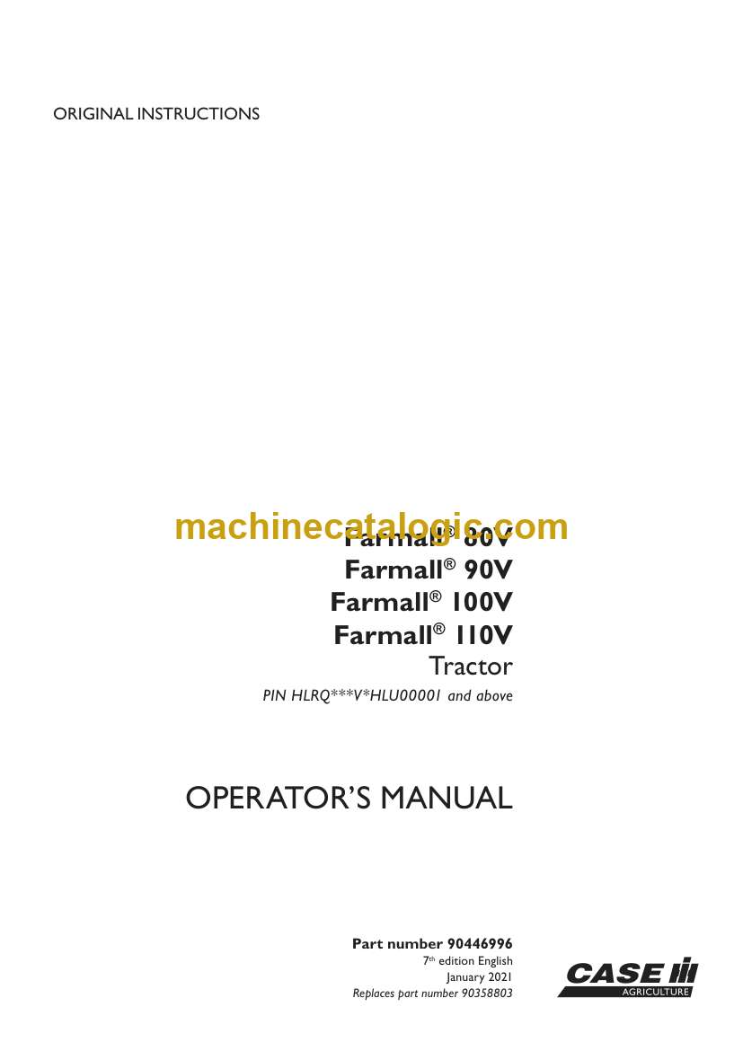 Model: Farmall 80V, 90V, 100V, 110V Tractor
