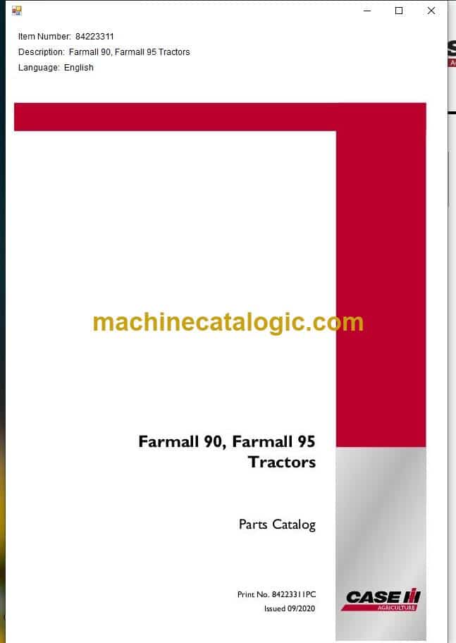 These Farmall 90 and 95 tractors spend their lives on loaders, mowers, balers, and light tillage, often in dusty fields and tight farmyards. This parts catalog is what I’d have open when I’m trying to match up what’s on the tractor with what I’m about to order. If a front loader pin egg-shapes a bushing or a hydraulic fitting cracks, I use the exploded views to trace the exact sub-assembly, spot every seal and washer in the stack, and confirm I’m getting the right revision for that tractor.