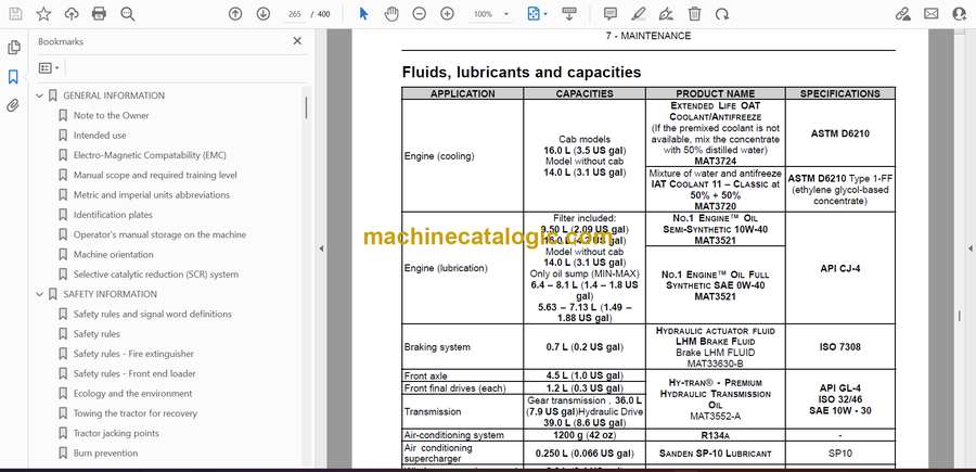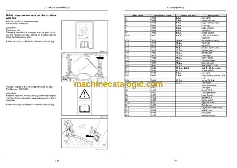 Operator’s manual storage on the machine
