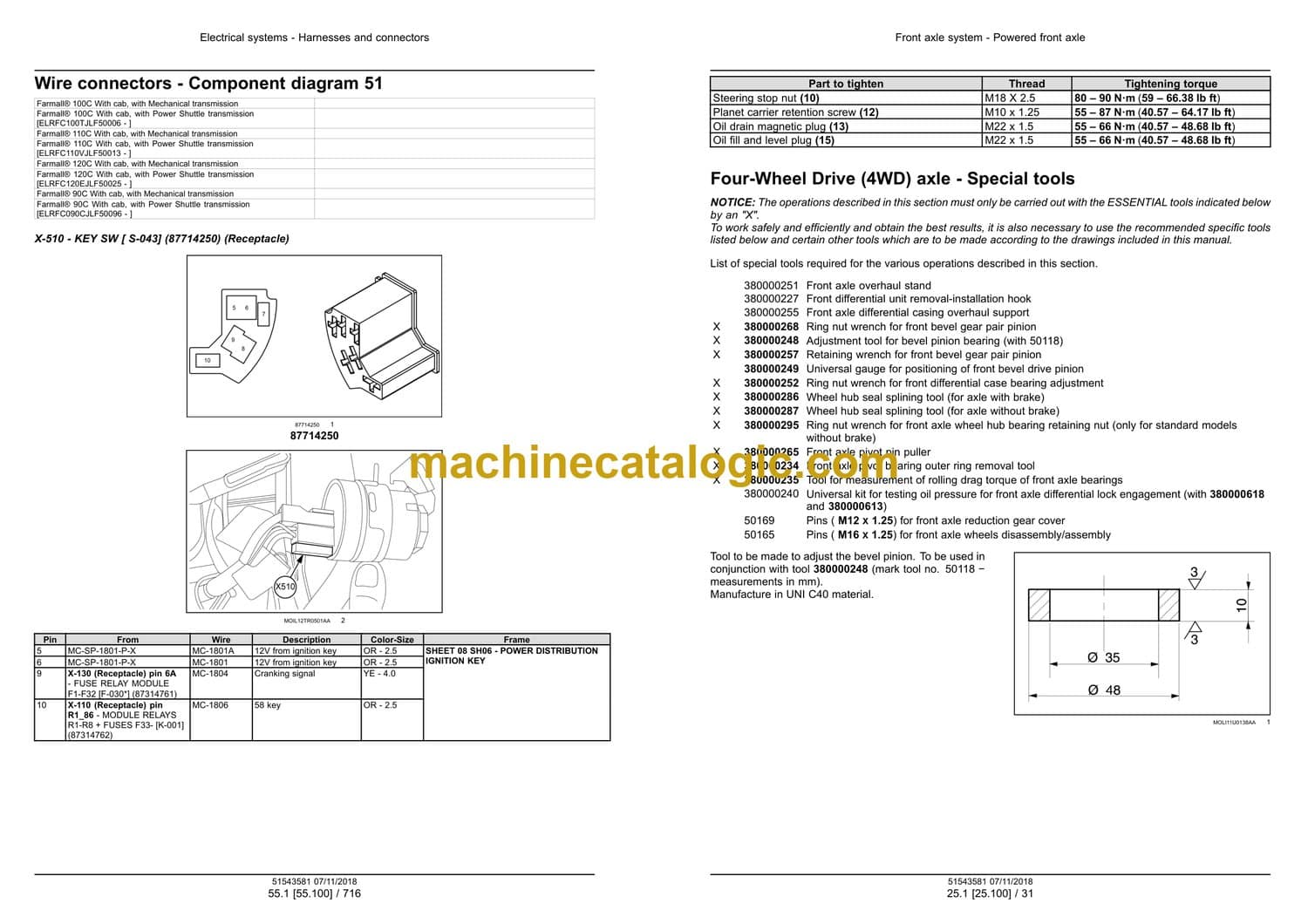 Case Farmall 90C, 100C, 110C, 120C Tier 4B Final Tractor Index: