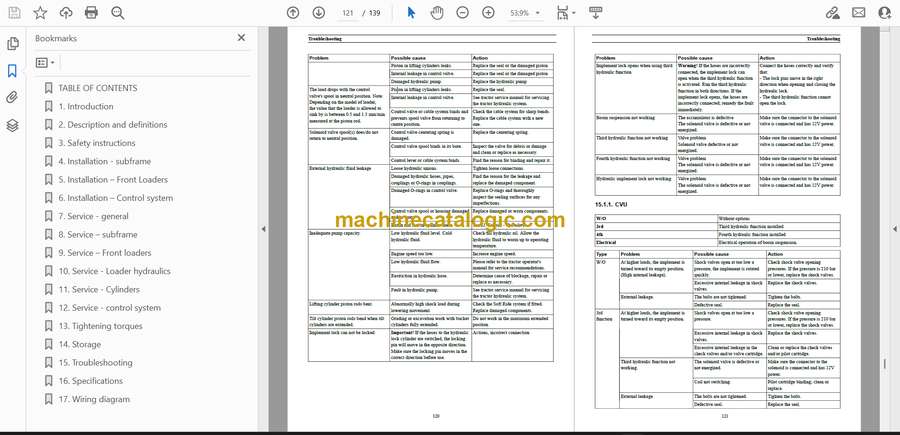 Out on the farm, this L113 loader’s living in dirt, manure, gravel, and mud, doing daily grunt work—feeding, stacking, loading trucks. This service manual helps you trace faults step by step, so you don’t just throw parts at it. Say the boom won’t lift under load: the book walks you through how to check the hydraulics, verify valve function, and test linkage before you blame the pump.