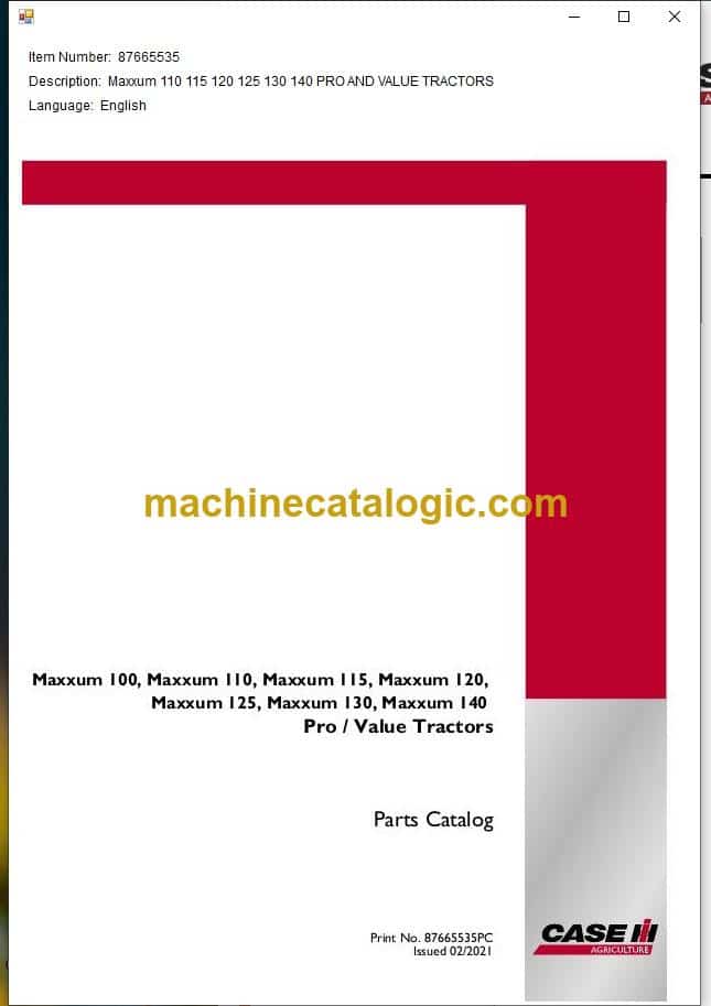 Model: Maxxum 100, 110, 115, 120, 125, 130, 140 Pro Value Tractors