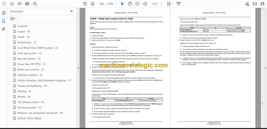 Out in the field this tractor’s usually hauling, baling, loading, or running PTO gear in dust, mud, and cold starts. This service manual helps you trace problems in a straight line instead of guessing—engine, clutch, transmission, 4WD, the whole lot. Say the 4WD light’s on but the front axle won’t pull; you’ll follow the steps to check switches, wiring, pressures, and mechanical bits in order, so you can isolate the fault before you start throwing parts at it.