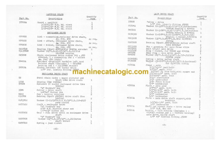 Case Model A for VAC Tractors 1-Row Corn Picker Parts Catalog