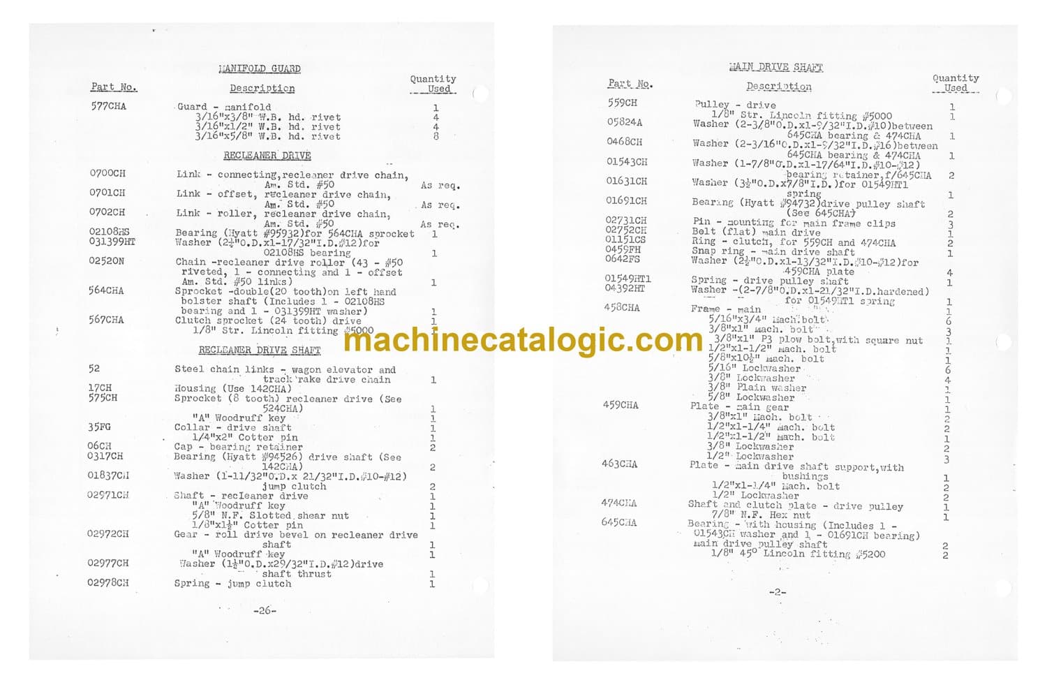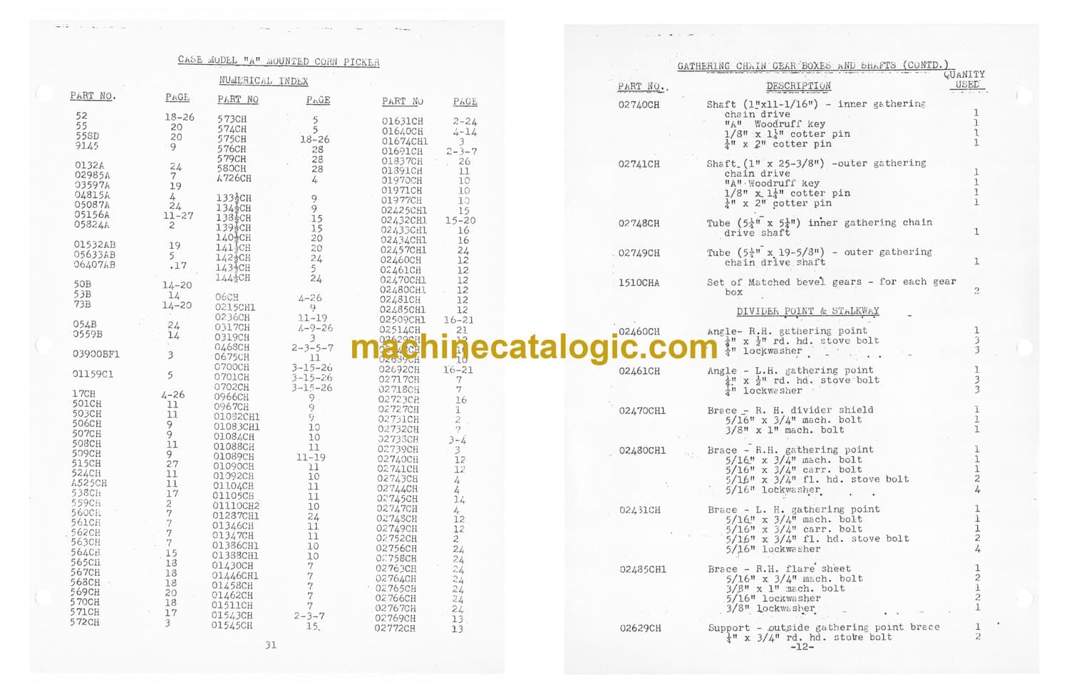 Case Model A for VAC Tractors 1-Row Corn Picker Index: