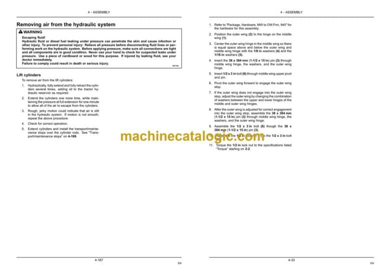 Hydraulic lift system assembly . . . . . . . . . . . . . . . . . . . . . . . . . . . . . . . . . . . . . . . . . . . . . . . . . . . . 4-61