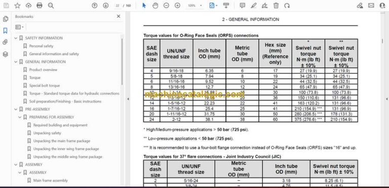 Torque – Standard torque data for hydraulic connections . . . . . . . . . . . . . . . . . . . . . . . . . . . . . . . . . . 2-8