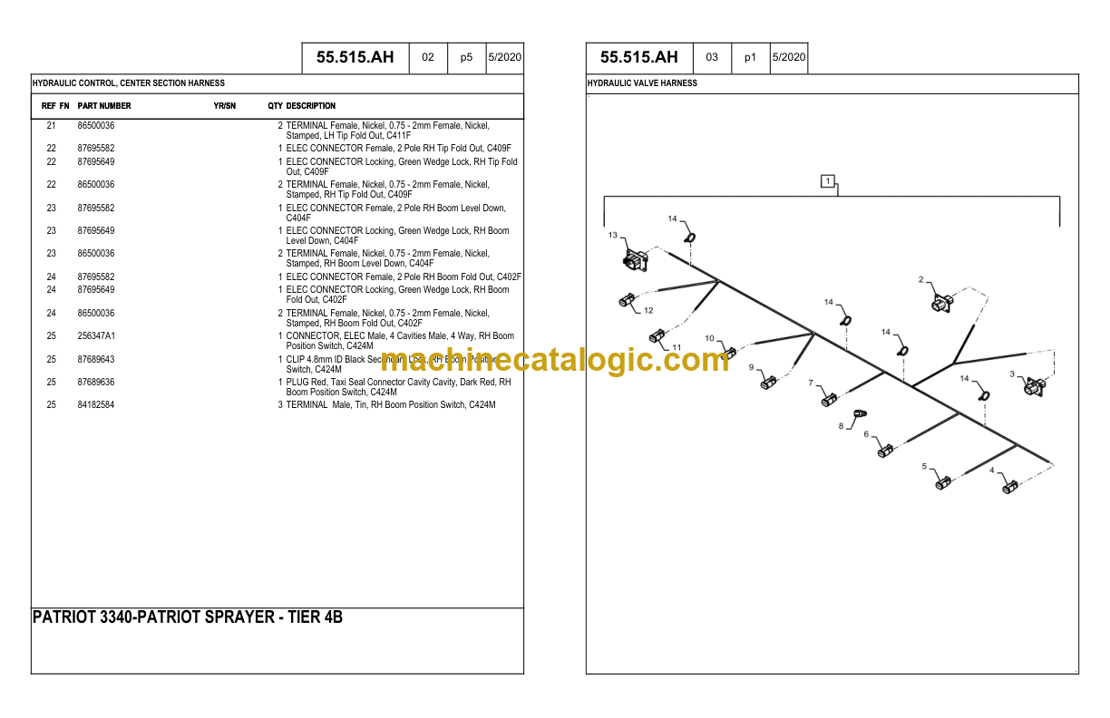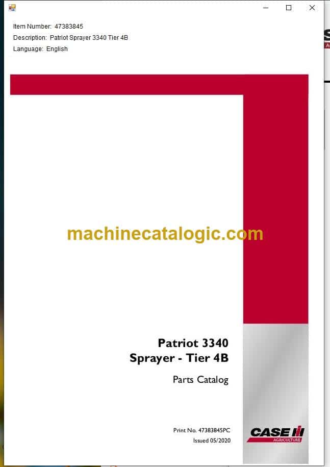 Running a Case Patriot 3340 Tier 4B sprayer, you’re usually in big, open fields, covering acres fast and working around mud, dust, and chemicals. This parts catalog is what I’d keep open any time I’m chasing down wear items on the boom, replacing plumbing in the solution system, or sorting out damage after a rock or fence post catches something. It lets you see how every bracket, line, seal, and fastener fits together so you can order the right pieces the first time—especially when a nozzle body or boom section doesn’t quite match what you expected.