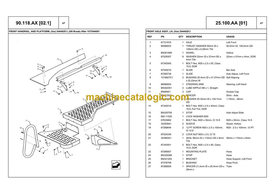 90.118.AX [02.1] FRONT HANDRAIL, AND PLATFORM; (Var) S44402FJ; (SN Break) After YGT044001