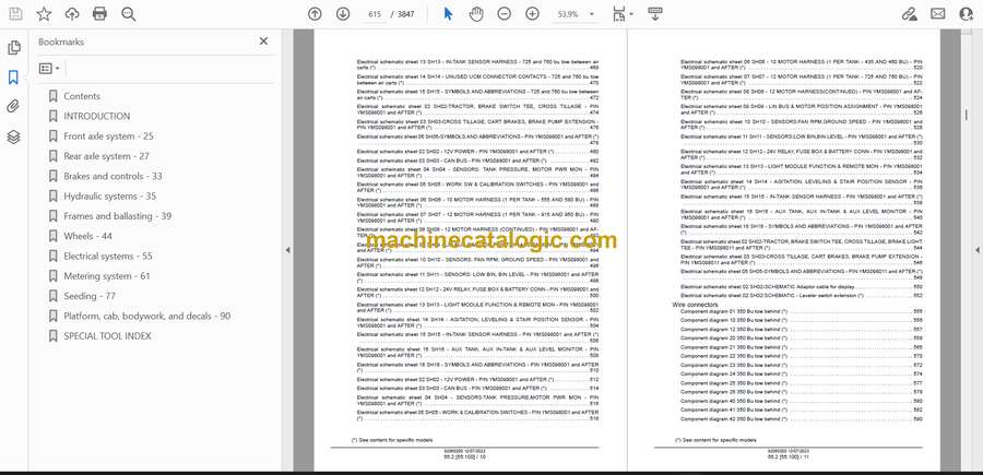 Out in small grains and canola country, this air cart spends its life eating dust, bouncing through ruts, and feeding seed and fertilizer all day. This service manual walks you through how to trace problems step by step so you can keep it metering right and towing straight without throwing parts at it. Say one tank won’t meter properly: you’d follow the book to check drive components, verify sensor signals, inspect the meter body, then test the system loaded, instead of guessing and swapping good parts.