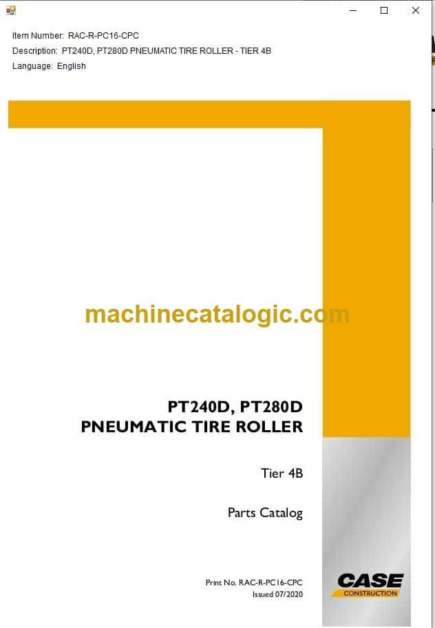 Model: PT240D, PT280D Tier 4B Pneumatic Tire Roller