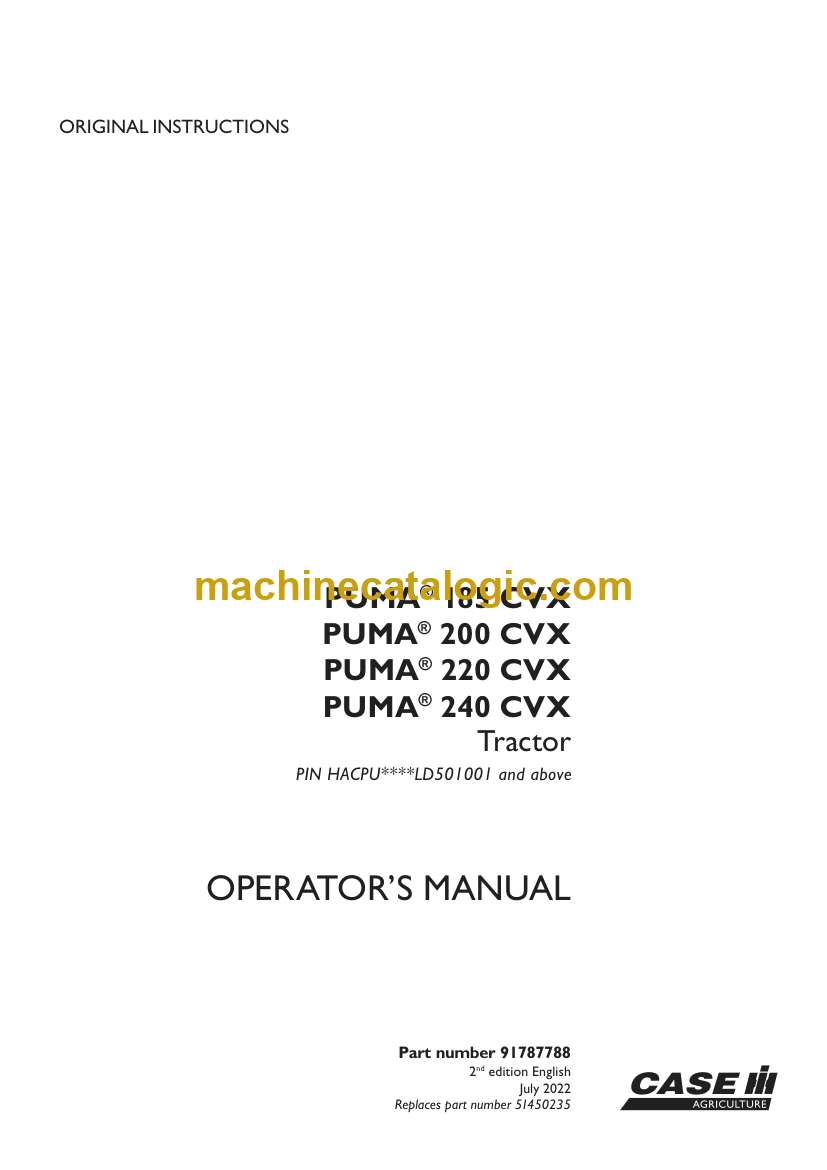 Model: Puma 185CVX, 200CVX, 220CVX, 240CVX Tractor