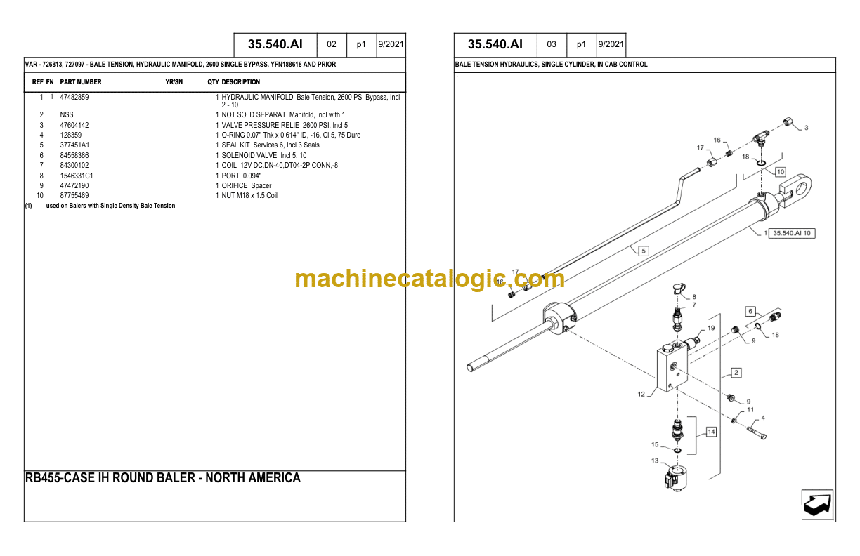 35.540.AI 05 VAR – 726813, 727097 – BALE DENSITY HYDRAULICS, SINGLE CYLINDER, YFN188618 AND PRIOR