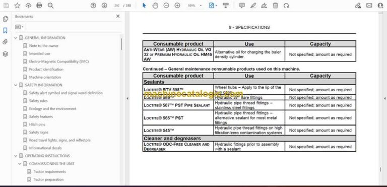 Case RB456A Round Baler Index: