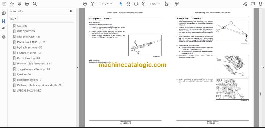 Out in the field, this baler lives in dust, chaff, and whatever weather you throw at it, and when it quits tying or won’t start a bale, your whole day’s shot. This service manual walks you through how to trace a fault, check each system in order, and verify what’s actually bad before you start throwing parts at it. Say the net wrap’s acting up: you’d follow the steps to inspect the sensors, test the actuator, and isolate whether it’s electrical, hydraulic, or just a mechanical bind.