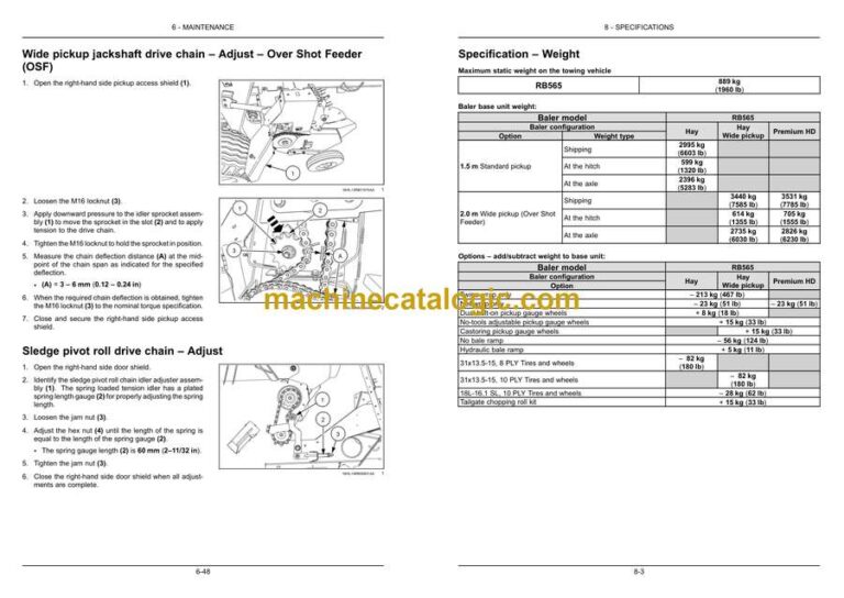 Specification – 2.0 m Wide pickup with Over Shot Feeder (OSF)