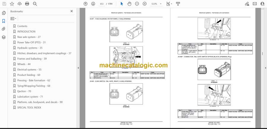 A: It’s typically a PDF you can search by word, so you can jump straight to PTO, hydraulics, or whatever system you’re working on.