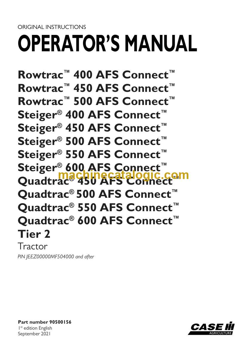 Model: Rowtrac 400, 450, 500 and Steiger 400, 450, 500, 550, 600 and Quadtrac 450, 500, 550, 600 AFS Connect Tier 2 Tractor