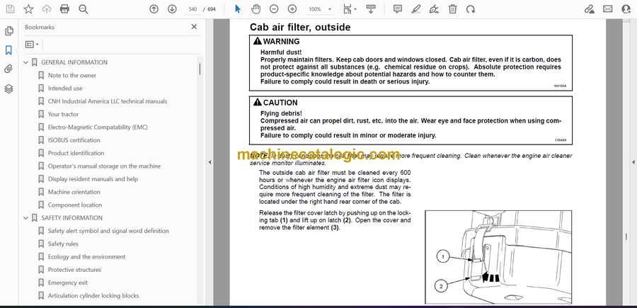 Operator’s manual storage on the machine