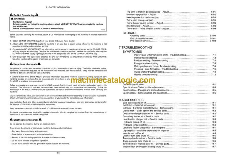 Case SB541C Square Baler Operator Manual