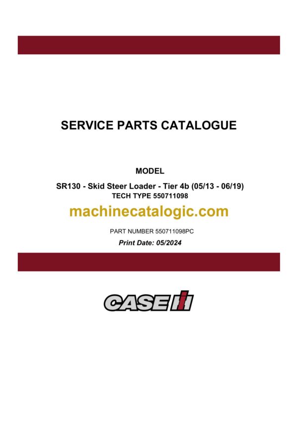 Case SR130 Tier 4B Skid Steer Loader Service Parts Catalogue